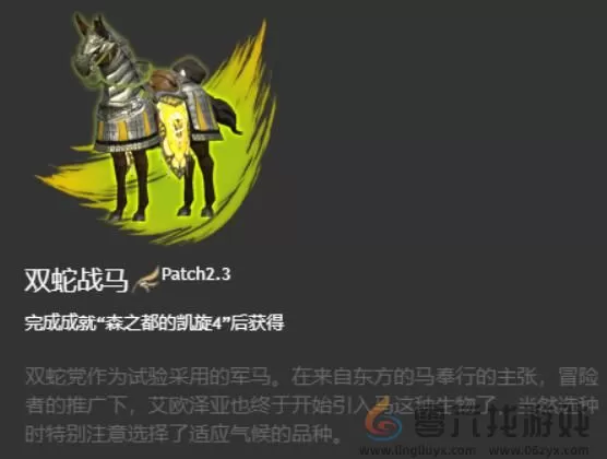 相关道具:坐骑信息:物品基本信息:ff14双蛇战马坐骑获得方法的全部内容就介绍到这里,更多最终幻想1...