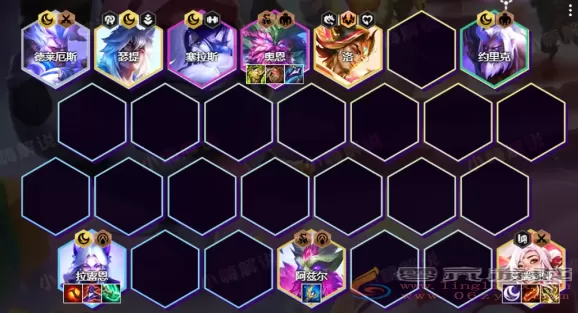 金铲铲之战S11夜幽九五阵容搭配推荐攻略1、阵容组成:诺手、约里克、拉露恩、奥恩、塞拉斯、刀妹、阿兹...